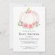 It is decorated with a watercolor pumpkin, pink roses, and green foliage.