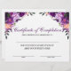 Professional, Customizable, Certificate of Completion. Great for classes, training courses, schools, business courses and more. Personalize with your custom text. Elegant Watercolor Purple Ultra Violet Floral with purple flowers, peonies and botanical greenery.