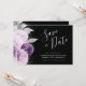 Floral Purple Silver Glitter Black Save the Date Invitation