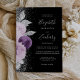 Floral Purple Silver Glitter Black Wedding Invitation