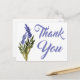 Say thank you in style! This sweet and simple floral note card features a hand drawn watercolor image of lavender flower wreath in complementing shades of purple and green highlighting a thank you greeting printed in a fancy purple script font with a contrasting crisp white background.