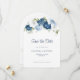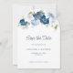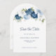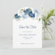 Elegant floral watercolor dusty blue, white, and navy floral bouquet wedding save the date with QR code card. The card features a script "Save the Date", that can be changed to a font type of your choice that are available here when you click the "Personalize" button. Add your wedding website and QR Code on the reverse side so your guests can keep up do date with your plans