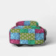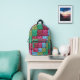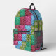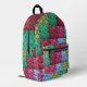 Handcrafted floral quilt design featuring vibrant patchwork blossoms in blue, pink, and green