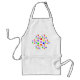This apron features a series of spots representing the seven colours of the rainbow, red, orange, yellow, green, blue, indigo and violet. The spots are arranged to for a floral pattern. The seven larger spots form the centre of the flower and six smaller groups of spots form the outer petals resulting in a pretty eye-catching design.