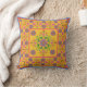 Floral Rangoli Pattern Border, Yellow Throw Pillow