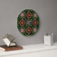 Floral Rangoli Pattern on Black Acrylic Wall Clock