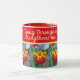 Floral Red Tulip God Quote 'I am Strong Through He Who Strengthens Me' Woman's Mug, with a fully customizable words. Designed from my original cat illustration.