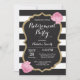 Floral Retirement Party Invitation Card. Women Retirement Party Invite. Pink Roses. Gold Glitter. Black and White Stripes. For further customization, please click the "Customize it" button and use our design tool to modify this template.