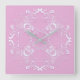 Floral retro pink lace design. square wall clock