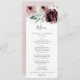 This floral romance wedding dinner menu card is perfect for an elegant wedding. The modern rustic boho design features romantic watercolor flowers in soft tones of burgundy, mauve, blush pink and cream white with green leaves. This menu can be used for a wedding reception, rehearsal dinner, or any event.
