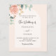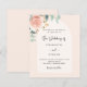 A blush rose gold background with an arch. Decorated with a rose gold and pink floral, rose flower and green watercolored eucalyptus greenery. Personalize and add your names and details.