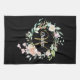 Floral Roses Script Monogram Gold Black Kitchen Towel