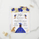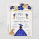 Floral Royal Blue Gold Charra Princess Quinceanera Invitation Postcard