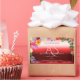 Make a lasting impression with this lovely and elegant monogrammed product label design featuring many different colorful flowers on a ruby red gradient background with a shimmery frame.