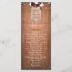 This rustic country wood floral boho wedding program features a dark brown wood background, string lights on top, and the names of the bride and groom in a mason jar decorated with a burgundy and blush watercolor bouquet. The text templates make it easy to fill in your own particular details.