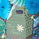 Favor Boxes in boho style with daisy floral artwork and sage green color.