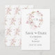 A pretty watercolor wreath of pastel pink delicate flowers with simple script. Add your initials in this pretty wreath.
