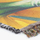 A quality printed throw has its advantages. This is a much finer weave throw than its loopier cousins, and though lighter, it is worth the investment for custom room accessorizing. The back is much prettier than the typical brown, and the fringe on the long sides very vivid, the selvage nicely done. Before photographing, I washed the throw in cold water, delicate, with a thicker woven throw the same size. On tumble dry low, this throw was dry in half the time as the other. This is a very practical quality if you use throws for furniture covers or to wrap up in frequently. The sleekness of the fabric makes it a great layer for accenting or protecting without the feeling of sitting on too much stuff. Perfect for napping or when you feel a light chill coming on. The color printing is beautiful and on this fabric, matched the design and color of my Photoshop image. This is an advantage for blending room fabrics and colors. The fringe on the short sides prints the colors from the design image and therefore varies from the side fringe. I streaked a white fractal line through the plaid pattern to give the illusion of weaving. This printed as crisp as an illusory thread, and put some white in the short side fringe, showing another advantage of print vs loomed- for artistic purposes, line lines, detail, and color integrity can be planned and preserved. My loomed throws have color limitations and more of a needlepoint texture. Print throws reproduce an exact image. The throw felt a little stiff straight out of the package, but this went away in the first delicate wash. Of course I searched the wash water for ink or bleeding and there was none.