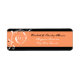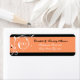 Elegant floral scroll leaf black coral flourish wedding label, featuring white scroll leafs, swirls, curls and coral orange dots on black background. There is a coral band with your text to the bottom. Classy, stylish and chic design perfect for a winter wedding.