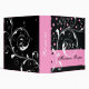 Elegant floral scroll leaf black, pink flourish recipe binder, featuring white scroll leafs, swirls and curls and pink dots on black background. There is a pink band with your text to the bottom. Classy, stylish and chic design that is fully customizable.