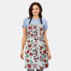 Great color and even though I ordered the kid size, it covers well enough to use during the holidays. I am not a big woman and prefer a shorter apron. I stand 5"6" and the length of the garment goes to mid-thigh. The tie straps fit well at my waist and even though there is no neck strap adjustment, the opening is plenty big enough. I am happy with the size and fit. I am sharing my apron with my 10 year old grandson, too! The color is vibrant and looks good, as shown on the website. The stitching looks strong and reinforced. Photographed is front side and back side of the apron, reinforced straps and coloring. My phone camera may not be the best at showing the details.
