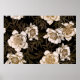 Floral seamless pattern. Garden flowers peonies and leaves. Black and print gold foil. Vintage illustration. Hand realistic drawing. Vintage. Background to create paper, wallpaper, summer textile.