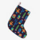 Perfect! Exactly what I ordered! I uploaded a picture of my blue chow, and the screen print was incredible. the back side of the stocking was the red and black checkered print. my puppy's name was also printed on the cuff of the stocking. PERFECT! Highly recommend this product! My puppy's name was screen printed onto the cuff of the stocking, the font was perfect!