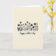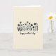This card features a row of stylized flowers in crisp black silhouettes set against a soft, creamy beige background, like a calm garden scene. The blossoms and stems stretch in a horizontal band across the lower middle, with varied shapes from spiky petals to rounded blooms and small buds. The close clustering of the stems and the way the flowers lean toward one another adds a gentle, affectionate closeness, like friends standing shoulder to shoulder ❤️. Below the floral band, the words “happy mother’s day” appear centered near the bottom in flowing black lettering. The simple two-tone palette keeps the focus on the graceful outlines and the airy negative space between petals and leaves. The background has a lightly textured, parchment-like look that softens the contrast and gives the design a tender, calm feel 🌼. A few taller stems rise slightly above the main band, while shorter blooms fill in gaps to create an even, balanced line.