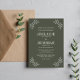 This gorgeously simple yet elegant wedding invitation features a frame of drawn leaves bordering the invitation text. Please contact me if you would like help with customizing the text portion.
