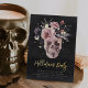 A spooky chic Halloween party invitation featuring a floral skull illustration topped with pink and purple watercolor flowers on a smoky black background. Personalize this unique and elegant Halloween party invitation with your event details in white lettering with gold foil accents.