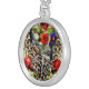 Ornate skull with floral embellishments on a beautiful necklace. Customizable with your choice of background color. A very unique piece, for a very unique individual... Carpe Diem