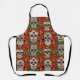 Great color and even though I ordered the kid size, it covers well enough to use during the holidays. I am not a big woman and prefer a shorter apron. I stand 5"6" and the length of the garment goes to mid-thigh. The tie straps fit well at my waist and even though there is no neck strap adjustment, the opening is plenty big enough. I am happy with the size and fit. I am sharing my apron with my 10 year old grandson, too! The color is vibrant and looks good, as shown on the website. The stitching looks strong and reinforced. Photographed is front side and back side of the apron, reinforced straps and coloring. My phone camera may not be the best at showing the details.