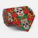 Floral Skulls Pattern Neck Tie