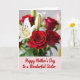 This card features a close-up bouquet that feels like a gentle hug, with deep red rose-like blooms nestled beside crisp white flowers and fresh green buds ❤️. Soft, glowing light falls across the petals, and the nearest red blossom takes center stage while the rest of the arrangement fades into a tender blur, like a quiet moment shared between close friends. The white flowers show tiny golden centers that add a sweet, sunny contrast 🌼. A small twinkle-like highlight appears near the upper right, giving the scene a lightly celebratory touch without stealing attention from the flowers. Along the bottom, a wide pale pink band grounds the design and creates space for the message. The text sits centered on that band in red, flowing cursive-style lettering, standing out clearly against the soft background. The greenery threads between the blooms in thin stems and buds, with layered leaves framing the bouquet above the pink strip. In the upper right corner, a faint sparkle glints against the softly blurred floral background.