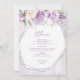 A handwritten, signature font combined with geometric frames, sparkly backgrounds and lush florals are used in this collection to set a warm and intimate tone for your wedding. The wedding menu shown here, with it's top border floral arrangement in mauve, lavender and cream, is an elegant background to add your own menu selections, names and wedding date. Search ID889 to see all the products in this wedding set.