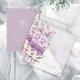 A handwritten, signature font combined with geometric frames, sparkly backgrounds and lush florals are used in this collection to set a warm and intimate tone for your wedding. The wedding RSVP shown here, with it's corner floral arrangement in trendy mauve, lilac and cream provides the details of your big day, all while offering a sneak peek of your wedding aesthetic and style as a couple. Search ID889 to see all the products in this wedding set.