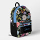Beautiful backpack with a floral Spring design on black with blue edging and font - update the name prior to placing into your shopping cart.