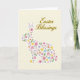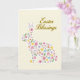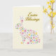 Designed with a soft, creamy background, the card centers on a long-eared bunny silhouette 🐰 formed from many tiny flowers and leafy shapes instead of a solid fill. Pastel pinks, sunny yellows, pale lavender, light blue, and gentle green weave together inside the bunny, like a small garden arranged with care. The clustered blooms sit close and overlapping, giving the design a cozy, affectionate closeness that feels like friendship shared quietly in springtime. Near the top, the words “Easter Blessings” are placed above the bunny in warm golden lettering, standing out clearly against the light backdrop 🌷. The gold text has a flowing, decorative look that echoes the curves of petals and stems below. The overall layout keeps plenty of open space around the central figure, so the floral details feel tender rather than busy. Small blossoms and sprigs fill the ears and body, with the densest pattern near the center and lighter touches toward the edges.