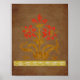Pretty orange and gold floral stencil on textured look aged paper poster print .
