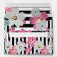 Floral, striped , black and white, stripes black, flowers, pink , blue, retro, floral retro