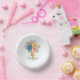 Floral Succulent Macaron Bridal Shower Paper Party Paper Plates features elegant watercolor flowers and macarons in an ice-cream cone in soft coral, teal, blue and yellow on a white background. Personalize by editing the text in the text boxes. Designed for you by ©Evco Studio www.zazzle.com/store/evcostudio