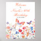Pretty birthday welcome sign with colorful flowers in pink, purple and orange, butterflies and foliage. Perfect for a spring or summer bridal shower. The words can be changed to suit your own details or requirements.