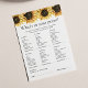 Sunflower Eucalyptus Floral Bridal shower game. Create a modern Sunflower Floral Bridal Shower game card with this cute template featuring beautiful rustic floral bouquet with modern simple typography.