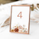 Bohemian floral terracotta wedding table numbers.