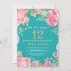 Floral Surprise 12th Birthday Gold and Teal Invitation