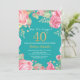 Floral Surprise 40th Birthday Gold and Teal Invitation