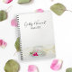 Create a pretty guest book or advice book for the newlywed bride and groom when you personalize the elegant Tea Cup and White Rose Pink Roses Spiral Notebook. This customizable guestbook features a digitally painted floral photograph of a flowery tea cup and saucer with pink rose flowers and white satin. Perfect for your pretty garden tea party marriage or bridal shower celebration event.