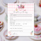 "Something Sweet is Brewing". Watercolor tea party theme baby shower. Watercolor cup of tea, macaroons, cupcakes and flowers. Pink rhomb.