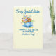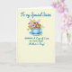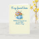 Designed with a serene, celebratory still life, the artwork centers on a pale blue teacup resting on a matching saucer, turned into a sweet little vase. A lush bouquet rises from the cup in soft pinks, sunny yellows, gentle purples, and rich reds, dotted with tiny blue and white blossoms that feel like quiet notes of affection ❤️. Nestled among the stems, a small brown plush animal peeks out with a simple, tender expression, as if sharing the moment with a close friend. The creamy background stays subtle, letting the flowers and cup stand out without distraction. A short message appears above the illustration in a flowing, elegant style, while a second line sits below in a simpler matching font, both in a dark, easy-to-read tone. The layout feels balanced and calm, with soft shading that gives the cup and petals a cozy, close-up intimacy 🌼. Light, gentle gradients add a mild glow along the rim of the teacup and the edges of the petals.