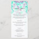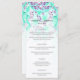 Bright and Colorful Floral Teal Ribbon Handfasting Wedding Menu template design perfect for your big day featuring beautiful flowing ribbon with matching flowers and purple leafs fading into a white background.
